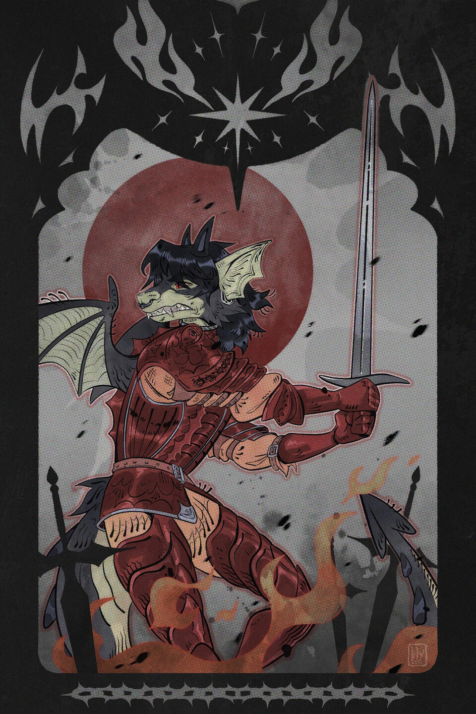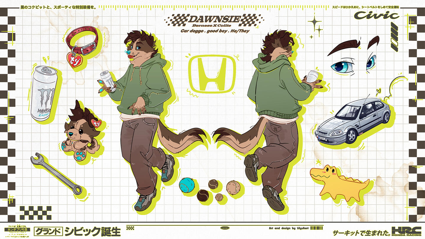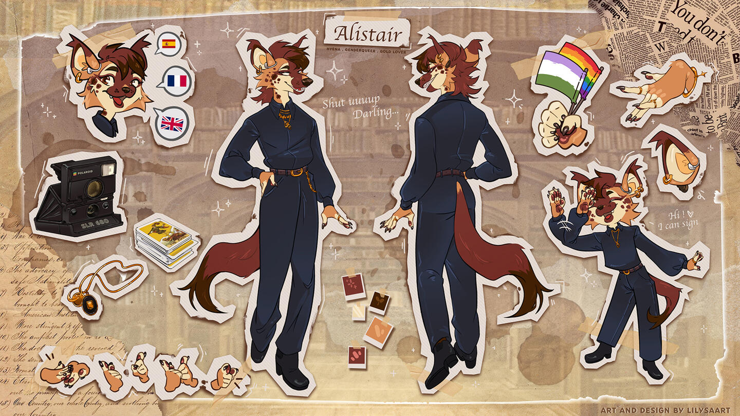 Includes : fullbody front, halfbody back or feral version, 3 items of the character, informations and close up of important details